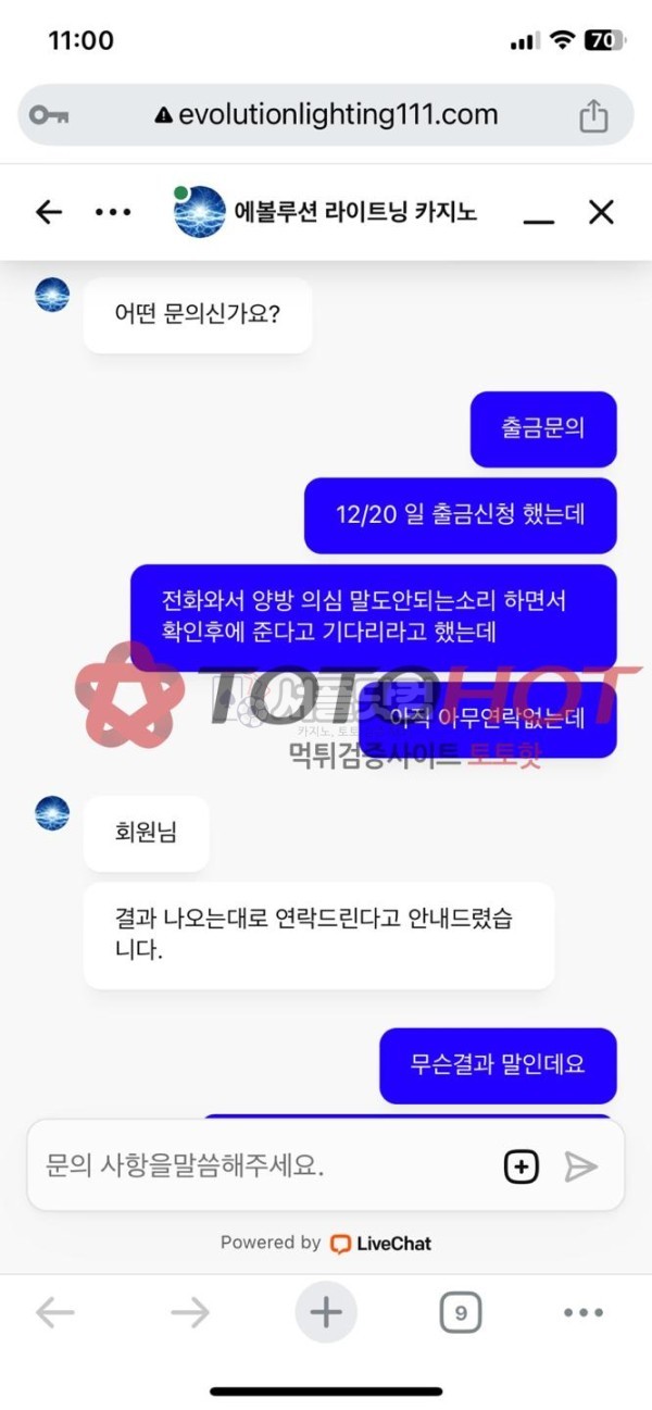 에볼루션 라이트닝 먹튀당했습니다 도와주세요